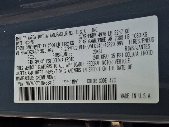 - Front Tire Size: P245/45HR20