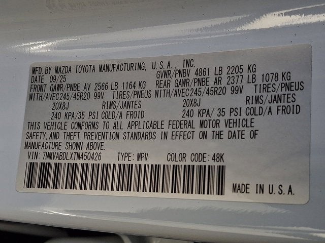 - Front Tire Size: P245/45HR20